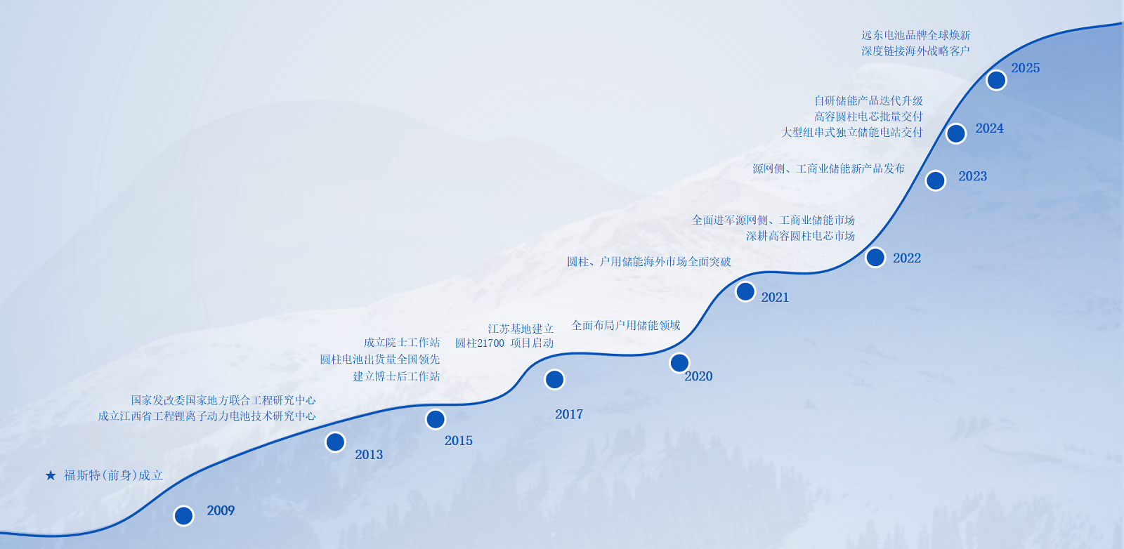 遠東電池創立于2009年,是遠東股份(股票代碼:600869)旗下子公司。遠東電池深耕新能源領域,是一家集研發、生產、銷售于一體的全球化電池及儲能系統服務商。公司實現從電芯到儲能系統的全線布局,致力于為全球客戶提供安全、可靠、可持續的儲能及智慧能源管理服務,場景覆蓋源網側、工商業及戶用。 遠東電池以“共建共享安全 綠色 美好生活”為使命,持續探索儲能技術邊界,助力全球碳中和目標,致力于成為世界領先的電池及儲能系統服務商。